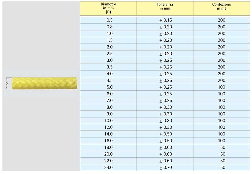 Guaina in fibra di vetro con vernice acrilica “Serie GVA” autoestinguente, classe termica F 155°C